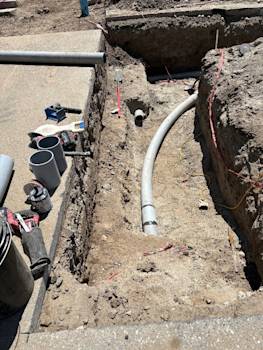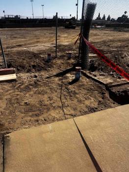 The pool bottom reinforcement is complete. Pool plumbing piping is complete. Underground electrical is complete. Musco poles and lights are on-site.