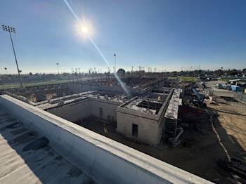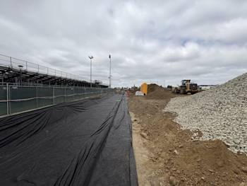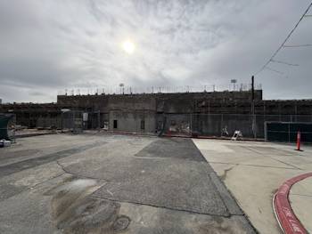 The press box had the required demolition completed to excavate and recompact for the bleacher and elevator footings.