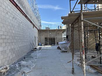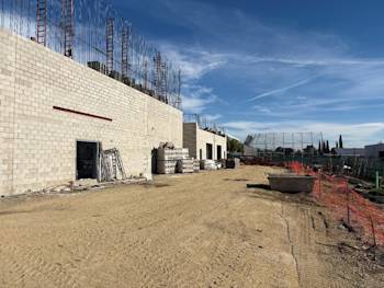 Following the successful completion of the building foundations, several key construction activities were completed throughout the month of October. Construction of the project mock-up structure was completed, including polished concrete, CMU, and ceramic tile mock-ups. Plaster and paint mock-ups are scheduled to follow. Building foundations were poured, including all future MEP pipe sleeves. CMU starter courses were installed and grouted to 8 inches above finished floor (AFF) throughout the building. Upon completion, fine grading of the slab-on-grade (SOG) areas was performed, followed by installation of sand bedding and SOG reinforcing steel. Outside the main building, asphalt replacement and select concrete paving were completed. While the project experienced rain events from October 14 through October 16, these conditions did not impact the overall project schedule.