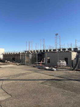This month’s focus was on Building B, Auditorium. Completed the support steel for the new roof penetrations and replaced the decking. The roof was completed for the Building C this month. Building B's steel supports were installed and the roofing decking replacement is in progress. The new electrical feed for the units’ progresses and the gas is complete, pending the new unit connections.
