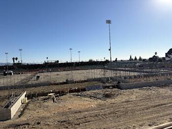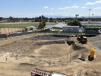 Underground pool plumbing and electrical is complete. Underground storm drain is ongoing. Roofing has started. Balance of retaining walls is ongoing. Bleacher extension is ongoing. Phase 2 demo/grading/site work has started. New pool supply building/rooms are ongoing.