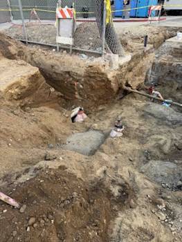 The pool demolition contractor mobilized and set up construction entrance. Temporary fencing was installed. Existing pools, pool equipment and pool deck concrete has all been demolished. Pool equipment building slab concrete demolition is ongoing. Excavation and re-compaction for the new pool is currently underway.