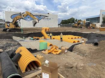 Following the successful shutdown and transfer of electrical services by SCE on August 30, 2025, several key construction activities were completed throughout the month of September: - All open SCE point-of-connection (P.O.C.) trenches were backfilled and compacted. - Final positioning of the exterior basketball court was completed, ensuring proper alignment and required clearances from existing underground utilities in preparation for future basketball equipment installation. - Over-excavation of the new gym building footprint and underground storm chamber areas was completed. - The building pad was certified in accordance with the project’s geotechnical and design requirements. - New underground storm chamber systems and associated underground structures were successfully installed. - All underground utilities outside the main building footprint were installed, including sanitary sewer, storm drain piping, fire service piping, and domestic water piping. - Foundation excavations began, and foundation rebar installation is currently underway. Foundation concrete placement is scheduled for early October.