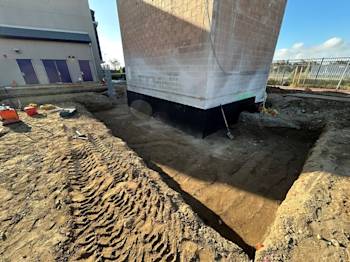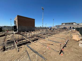 During the month of June, underground low-voltage duct banks for Building U were installed and backfilled. Elevator footings were excavated and poured, and the remaining building footings were excavated with rebar installed.