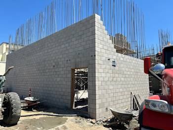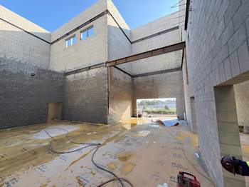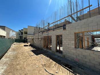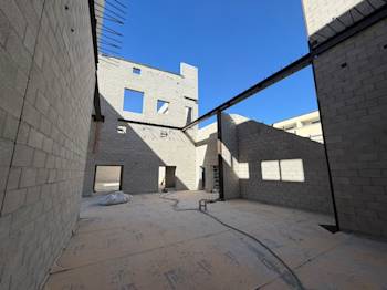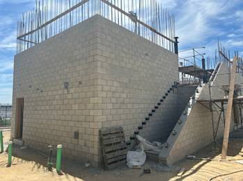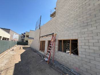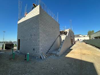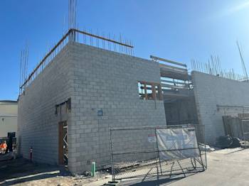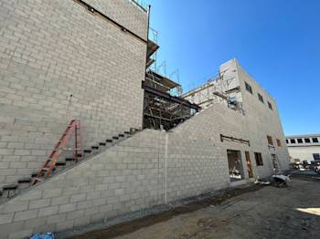 During the month of August, Building U continued with CMU block installation and in-wall rough. The embeds were set for the preparation of the stairs, and the painters completed painting Buildings Q, N, B, and C.