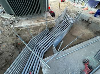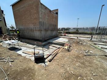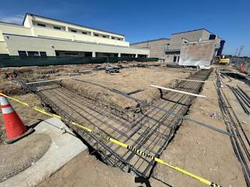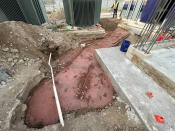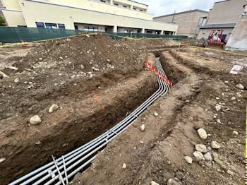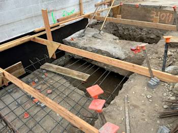 During the month of May, the underground low-voltage duct bank for Building U was installed and backfilled. Elevator footings were excavated and poured, and the remaining building footings were excavated with rebar installed.