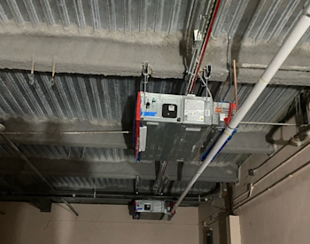 During the month of November, construction continued at Building D. On the first floor, epoxy dowels and concrete were installed in the trenches, ceiling wire installation began, and HVAC work continued. On the second floor, drywall installation was completed, ceiling wire installation began, and HVAC roof units were set in place.