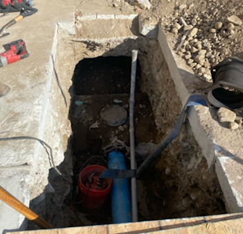 During the month of February, framing activities and in-wall rough-ins in Building M progressed. Ramp footing excavations began, soffit framing in the workroom was completed, and restroom sewer connections were installed.